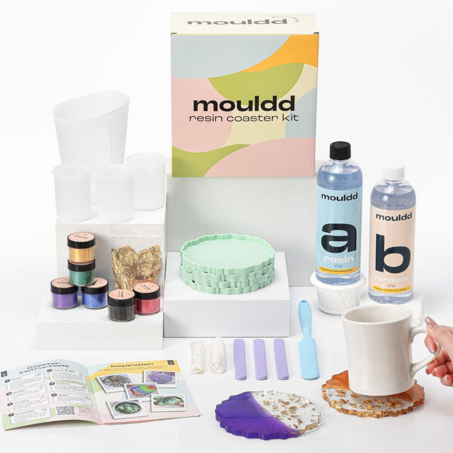 Resin is absolutely beginner friendly and we have a coaster kit made specifically for crafters who want to learn resin. It comes with everything you need to make 10 coasters at home, including video tutorials taking you through every step.