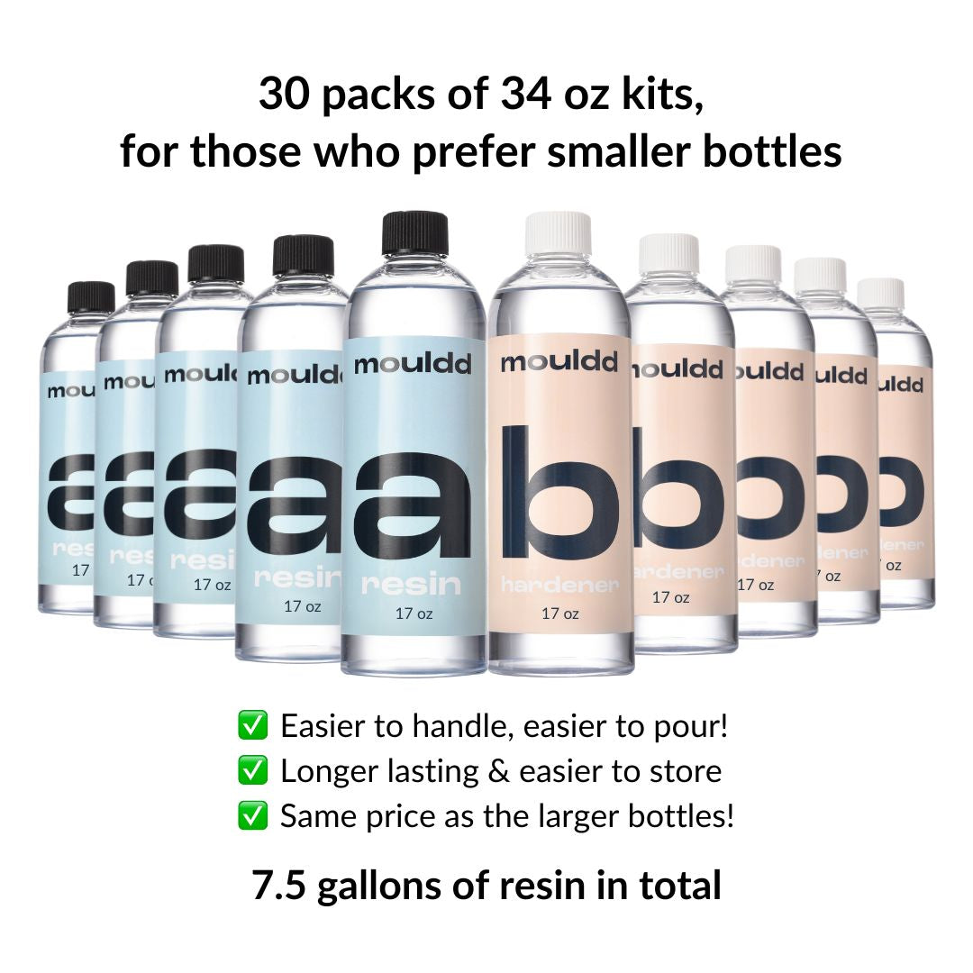34oz, 1.25 gallon or 2.5 gallon combined of our premium, heat resistant resin/hardener.