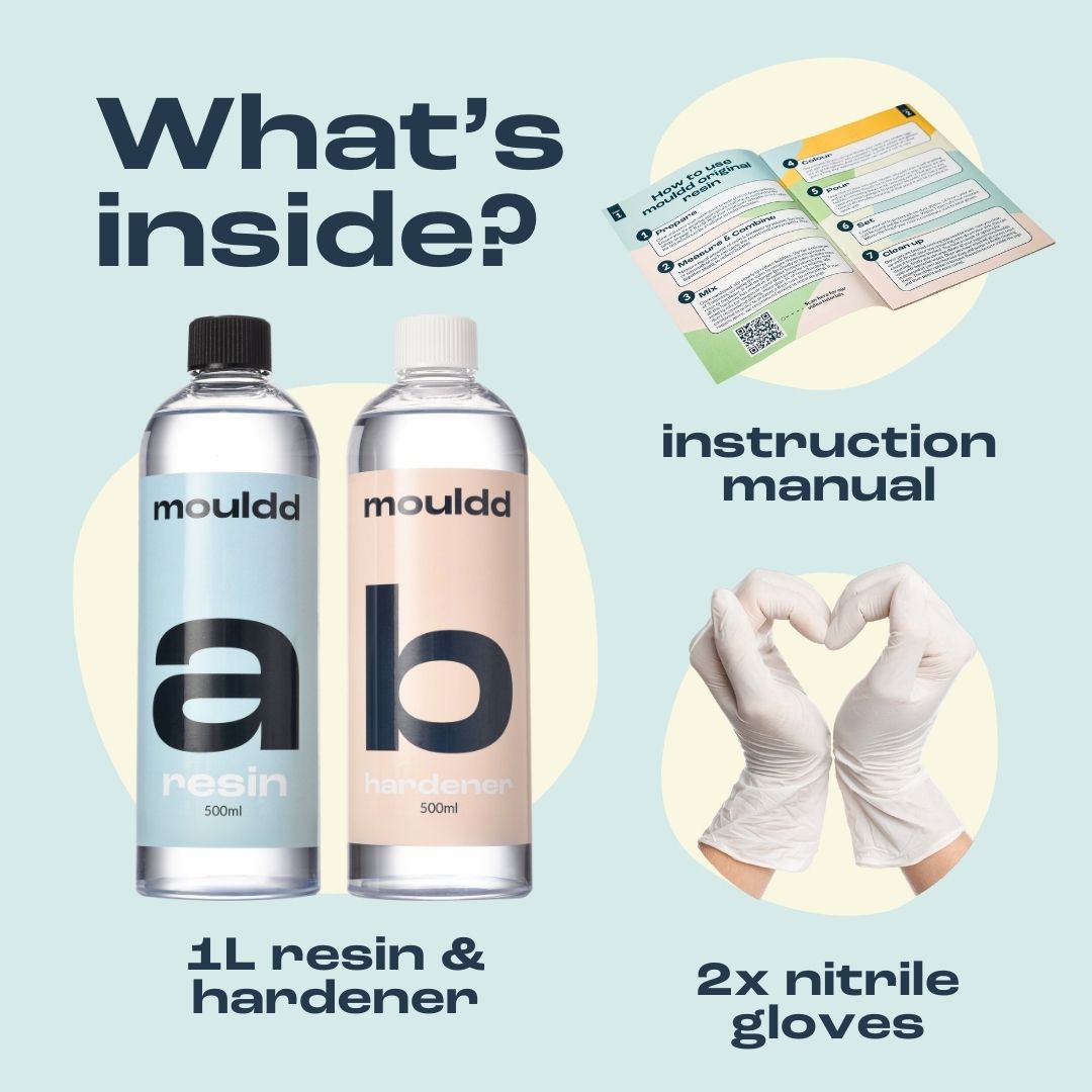 - 1L of our premium, heat resistant resin/hardener. 500ml of each.
