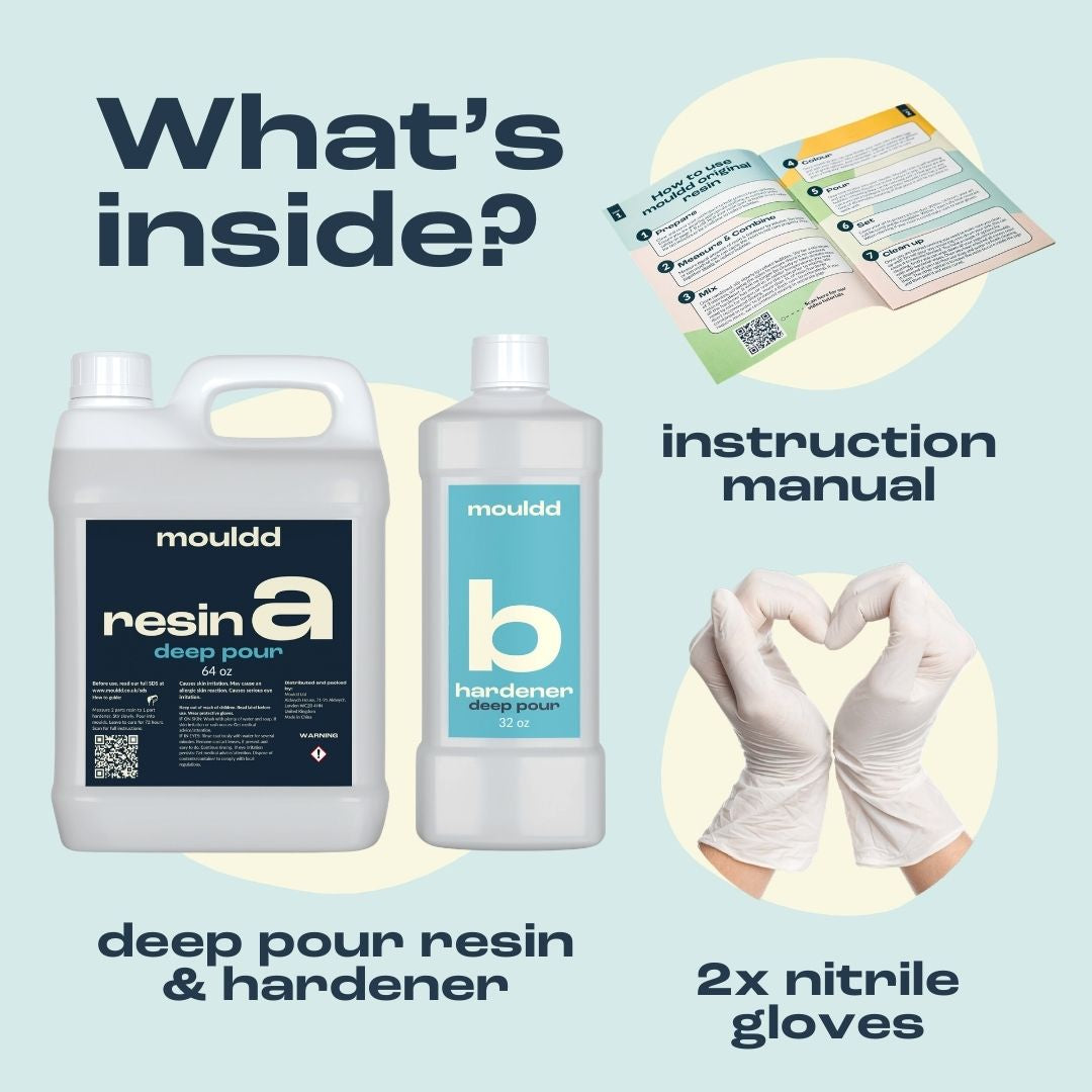 Mouldd's deep pour resin is a versatile resin and can be used on a range of projects. It is designed to work for depths between 1-4 inches. Some of the most common things our customers have used Mouldd resin to create are: