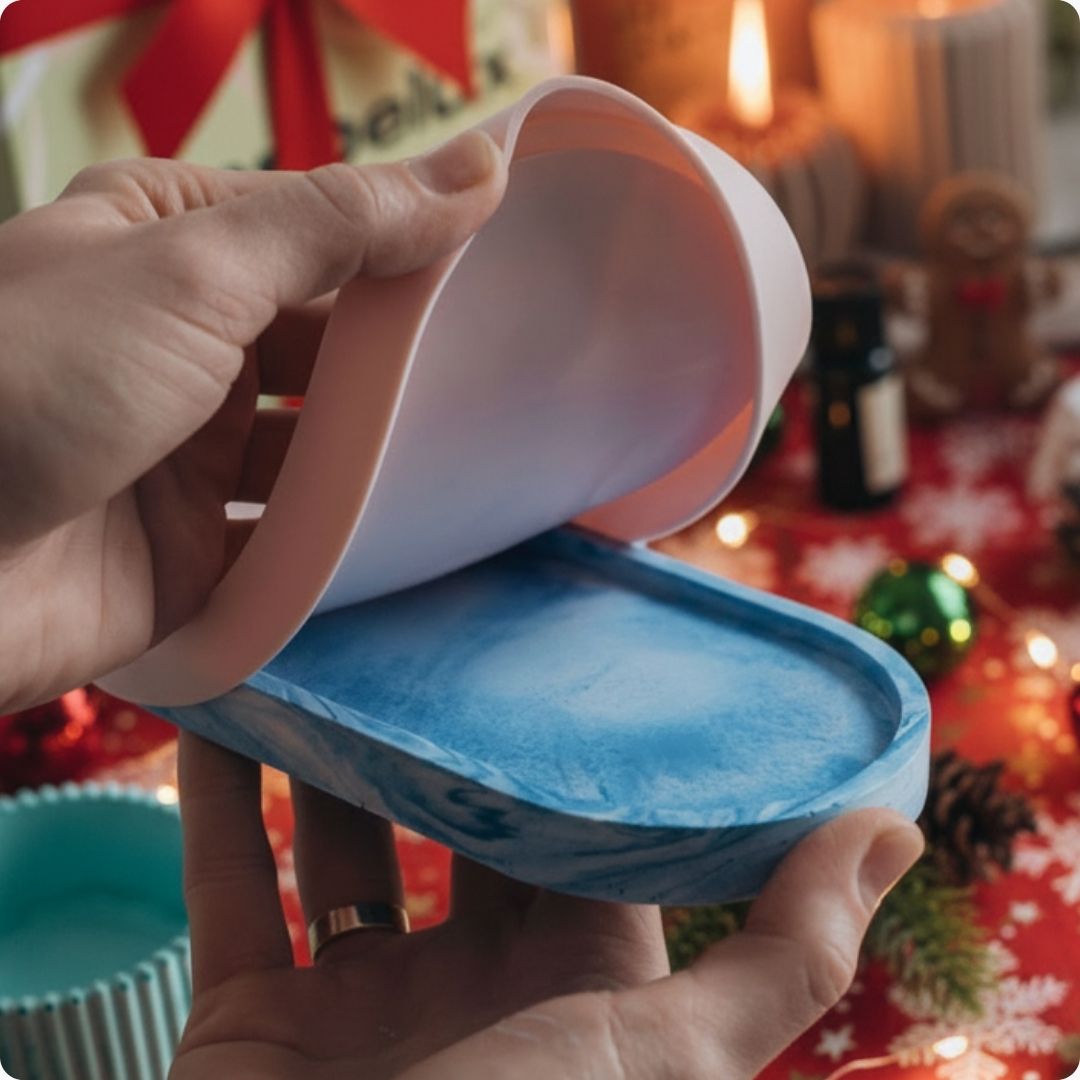 Marbelux can be poured into silicone moulds, so any you have at home should work perfectly! Nearly every mould we sell works with marbelux so the sky is the limit!